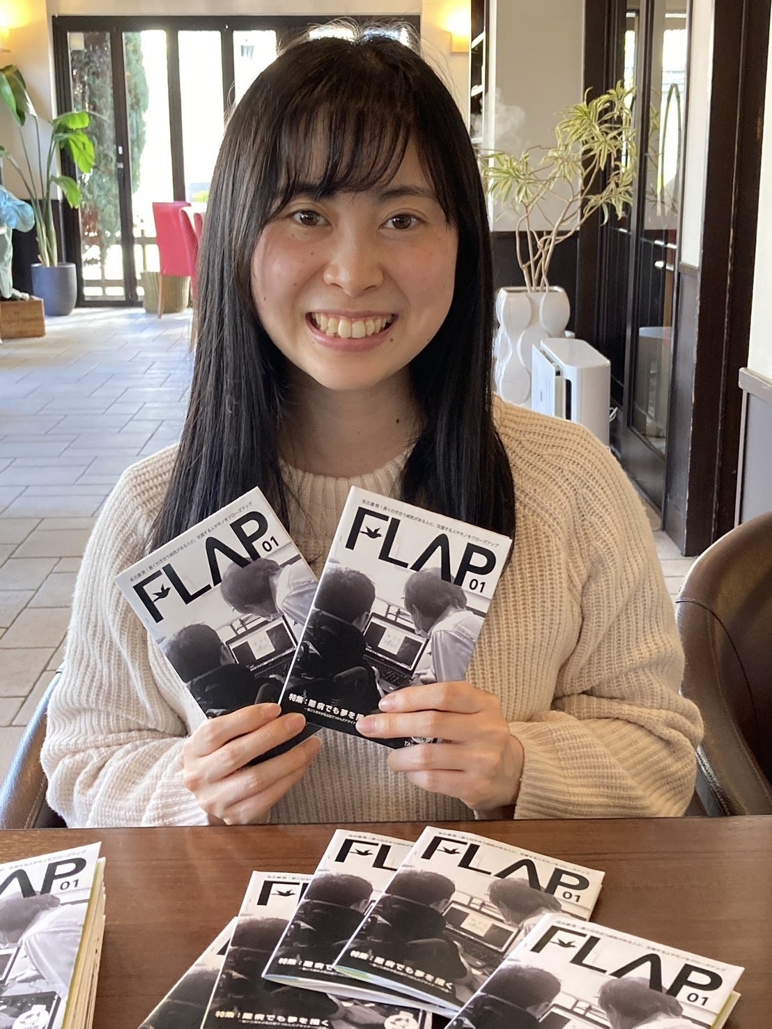 タイトルの「FLAP(フラップ)」には、患者さんや支える人たちの思いが、読んでくれる方の元へ羽ばたいてゆくという想いを込ました。