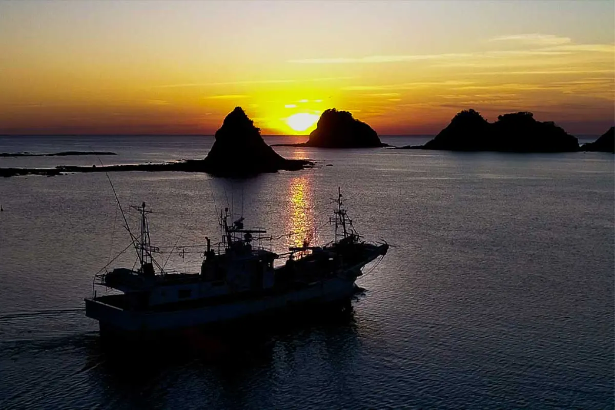 ■日本と韓国との国境付近。対馬西沖の海域の黄金色に輝くアナゴ