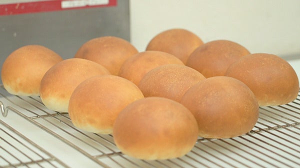 ”余計なものは一切ない原料から作られる最高のハンバーガー用バンズです。
