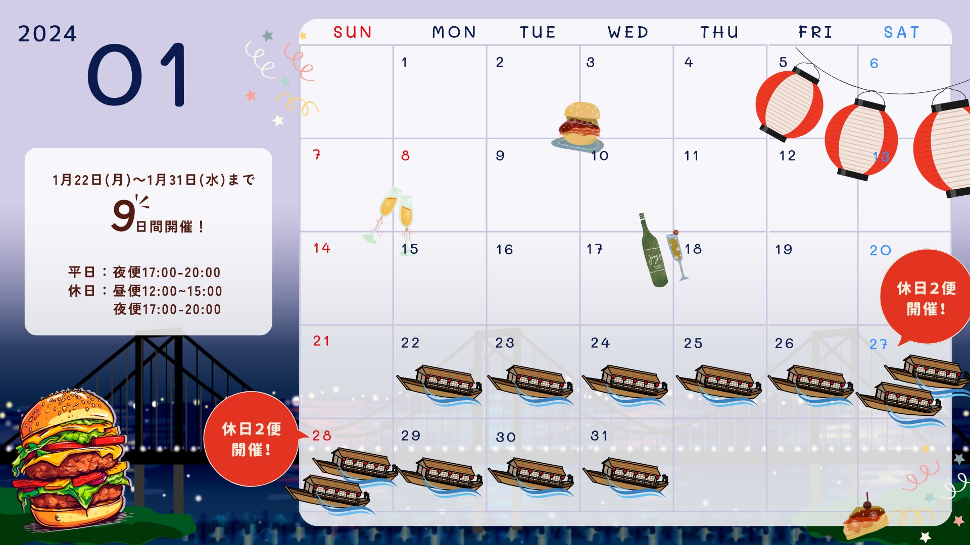 1月22日〜1月31日までの9日間、毎日開催します!