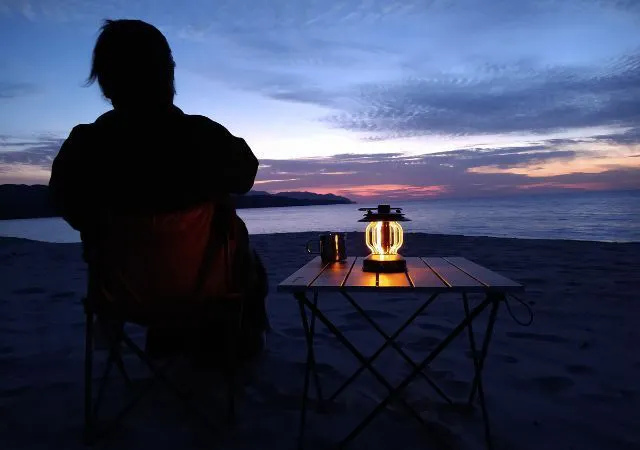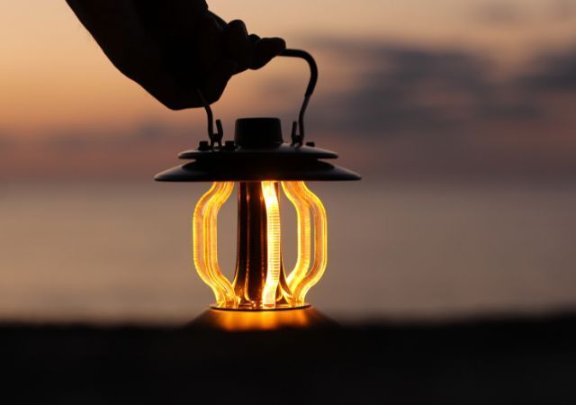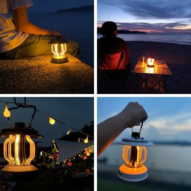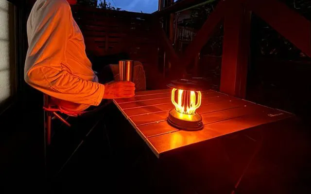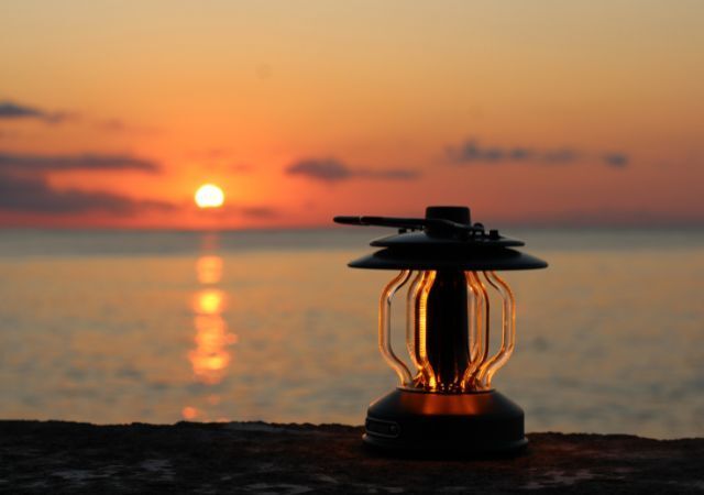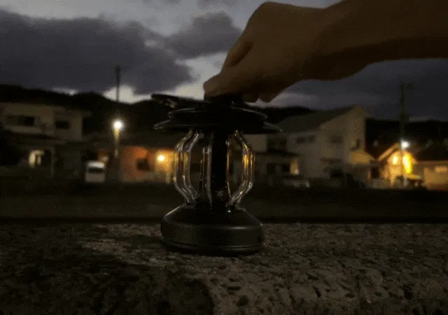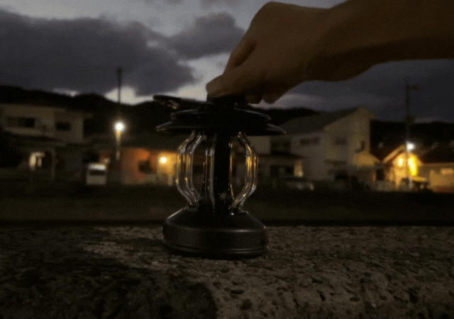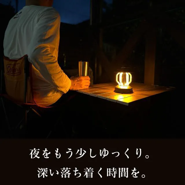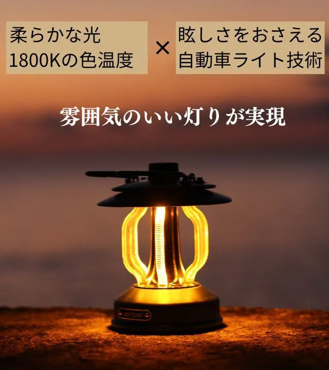 どこにいても夕陽のような優しい光を楽しめる、雰囲気のいいLEDランタンです。