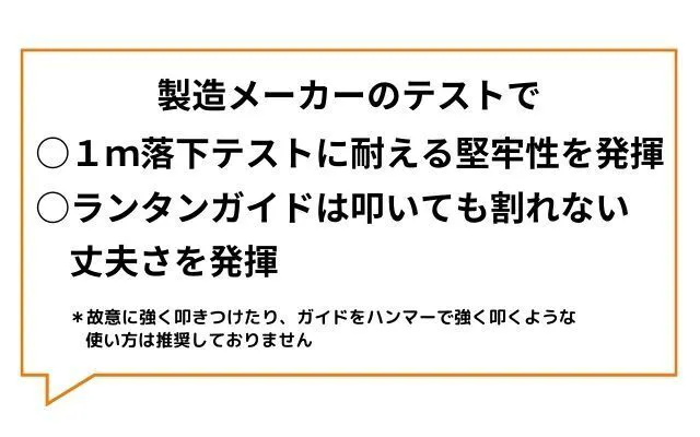 ライトガイド部分は強度の高いポリカーボネート素材を用いているためも少々のことでは割れません。