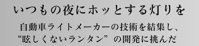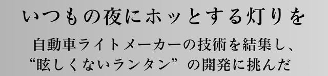 高品質の素材と自動車ライトメーカーだからできる照明技術のデザイン。ただのランタンじゃない、眩しさをおさえ雰囲気をとことん追求。