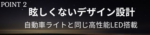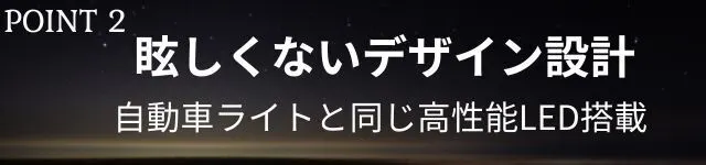 落ち着く灯りの秘密は、眩しさを大幅に減らした特徴的なデザインと自動車ライトメーカーの高いLED照明技術。
