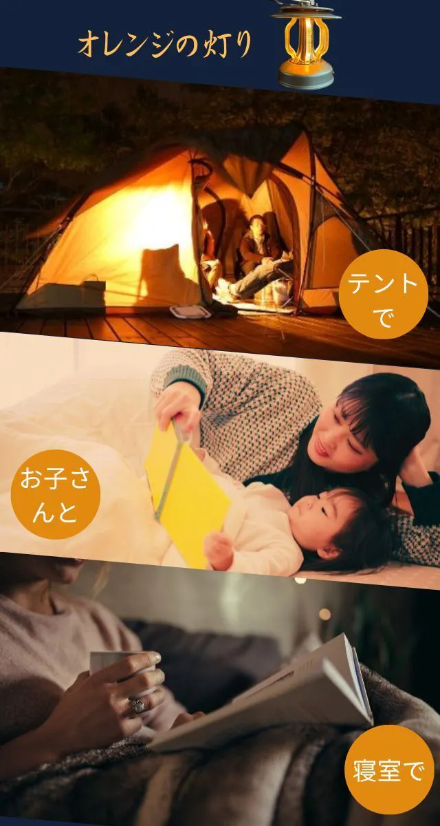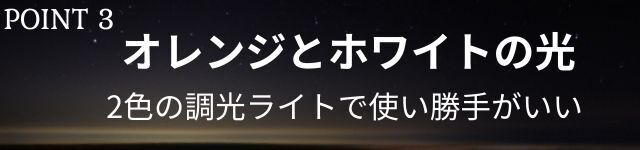 A:オレンジの灯りとホワイトの灯りの両方が備わっており、簡単に切り替えができます。