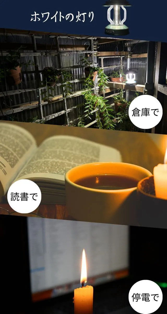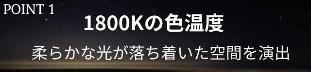 雰囲気のいいランタンを作るにあたって、もっともこだわった点のひとつが、1800K(ケルビン)の色温度です。目に優しい柔らかな光が心地よい雰囲気を醸し出します。