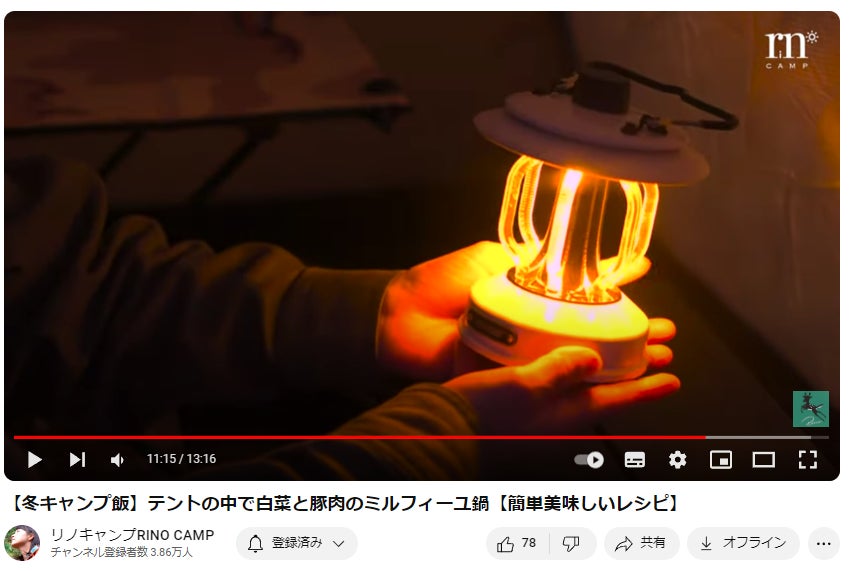リノキャンプRINO CAMPさんにBRTLEDランタンをご紹介頂きました。↓↓https://www.youtube.com/watch?v=WPTYv5nlvOEテントの中で使用したランタンの灯りは何とも言えません。まるで夕陽!落ち着く灯りの正体は、夕陽や炎の1900Kに近い1800Kの光は、自動車ライトメーカーだからこそ実現したものになります。