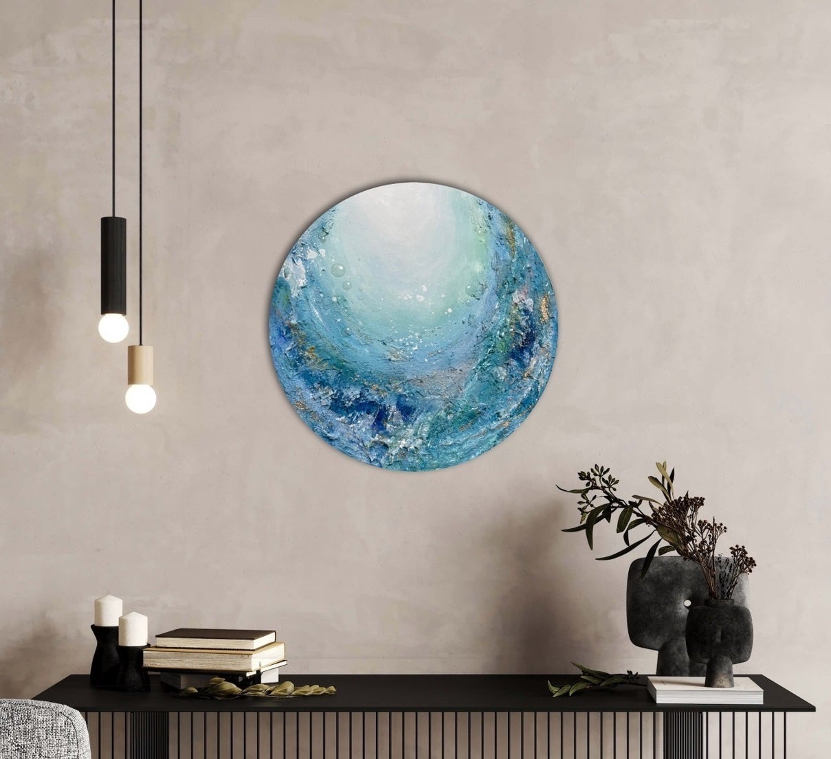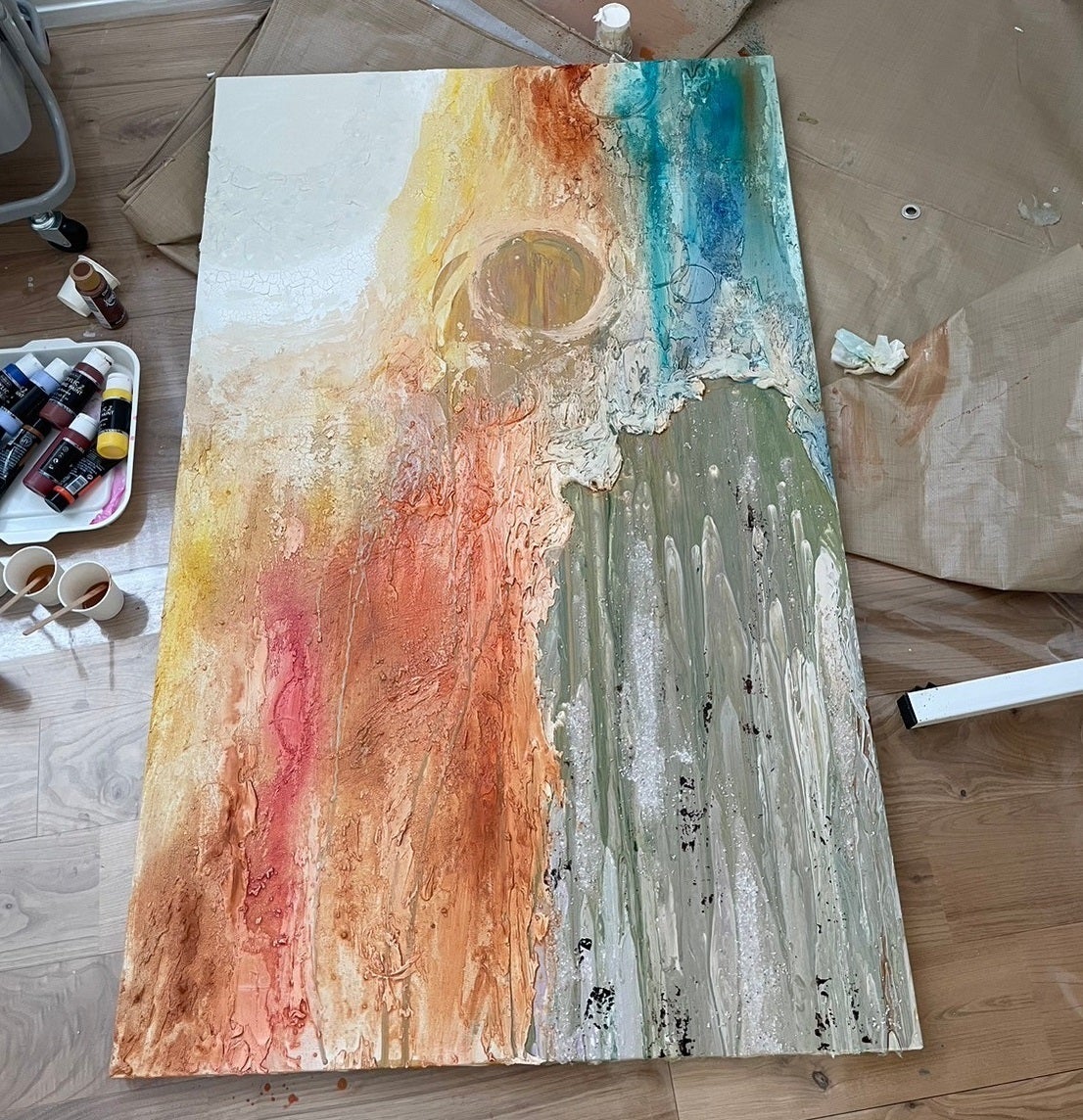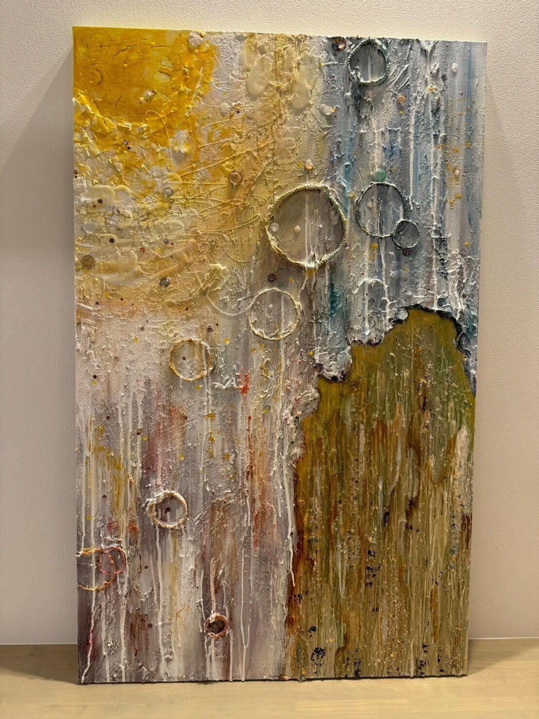 制作期間に3週間を費やしたこの作品は、ポーリングアートやテクスチャーアート、4種類の香りを画材に混ぜるなど、いろいろな手法を私なりにアレンジして制作しました。