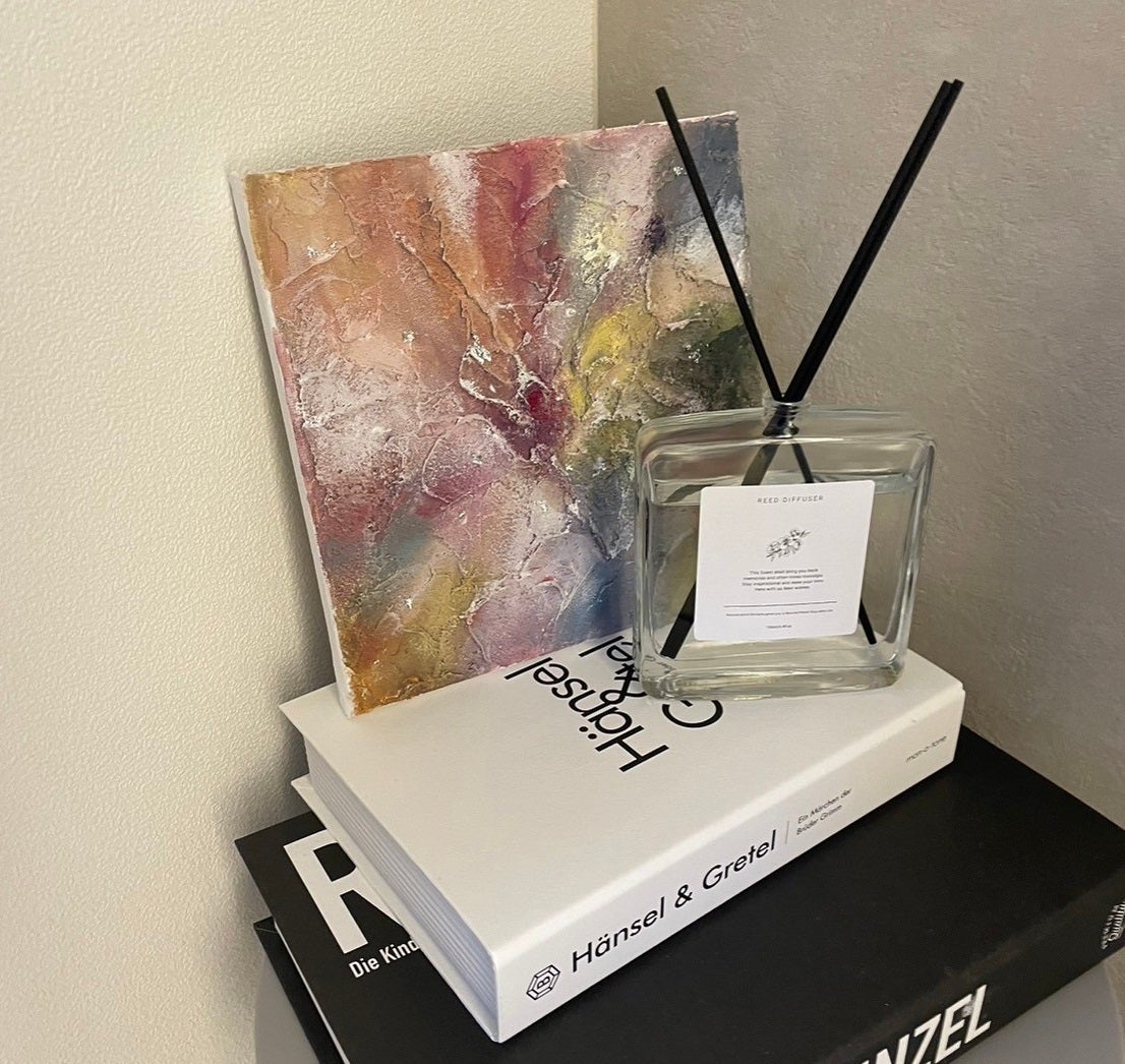 もともと、絵を飾る際に「好きな香りがふんわり香ったら毎日happyだろうな」と考えていたのですが、そのような作品がなかったので、自分で作ってみることに。