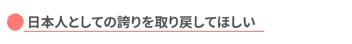 日本人として誇りを持てるようになれば、もっと自分たちのことを愛せるようになるんじゃないか? もっと外国人に対しても自信を持って話せるんじゃないか? と思うのです。
