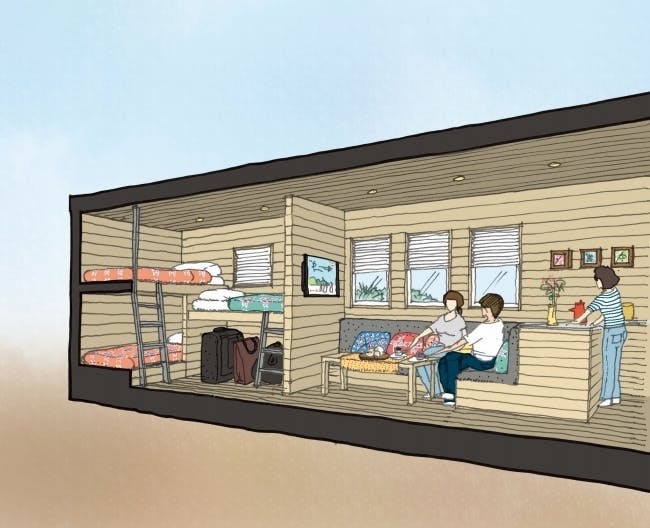ホテルは、一条工務店さんに寄贈いただいたコンテナを活用し、内外装は、株式会社エリアノ 様にデザイン監修と仕上げをしていただきました。