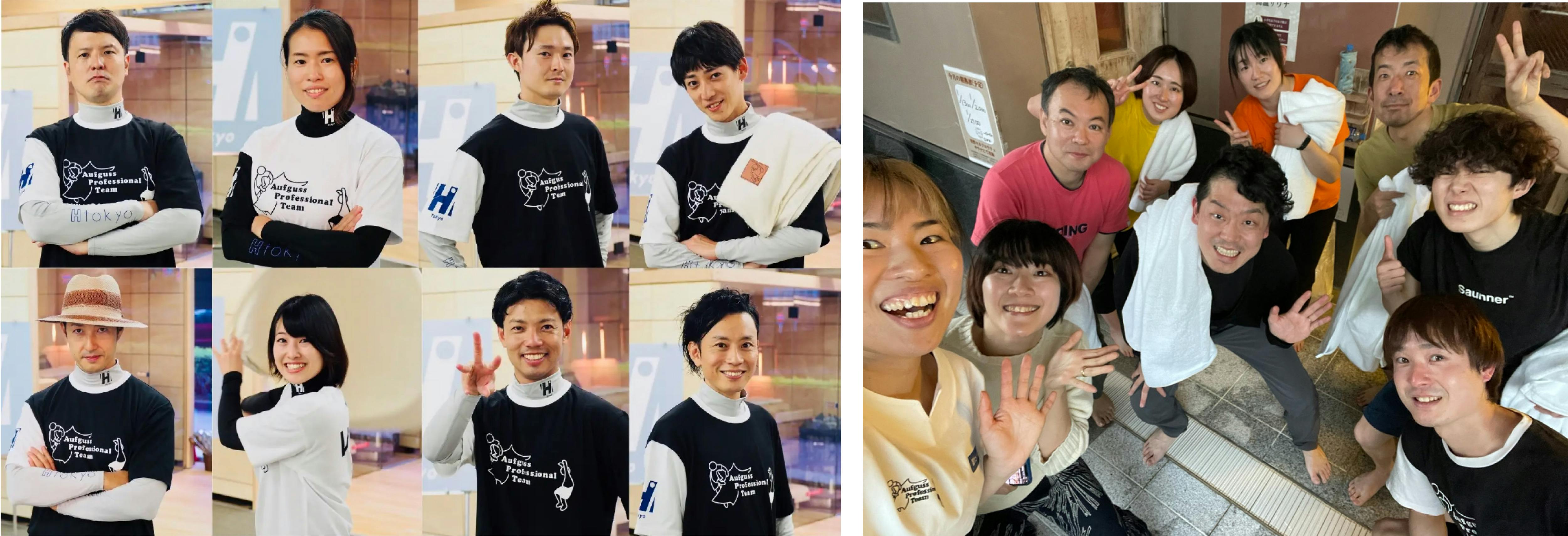 そのため、オープンに向けて、日本のサウナをアウフグースで盛り上げ、そして世界大会に競技者として参加することを目標に日本で最初に作られたAufguss masterの精鋭集団、Aufguss Professional Teamにもご協力をいただいています。
