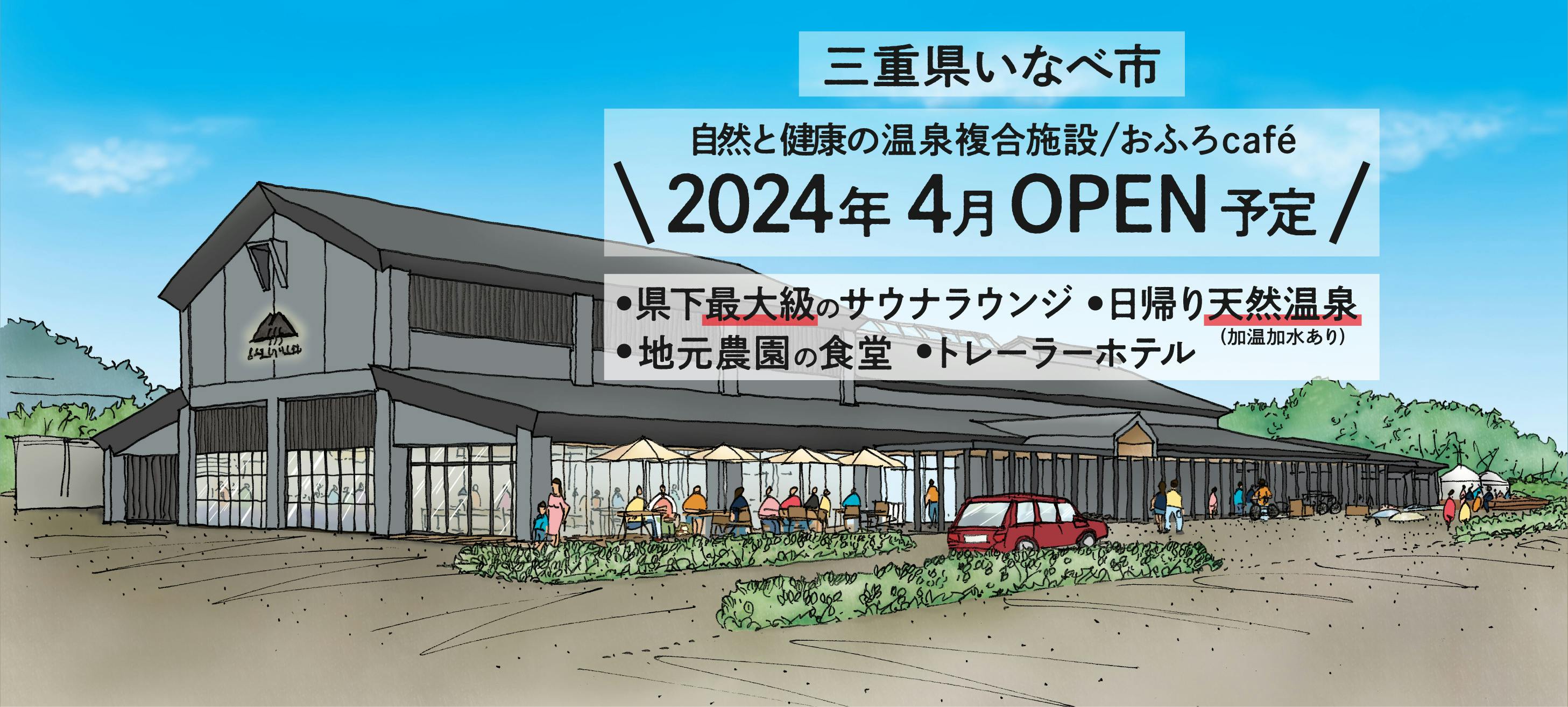 これらの複合的な施設を「いなべ阿下喜ベース」と名づけ、これまでに利用が少なった若い方々やファミリー層、更には名古屋、豊田、四日市、滋賀県など近隣の都市からもお客様に来て頂き、そしてこの新しい「おふろcafé」をきっかけにいなべの良さを深く知って頂くような施設にするべく、従業員一同頑張っていきたいと思います!