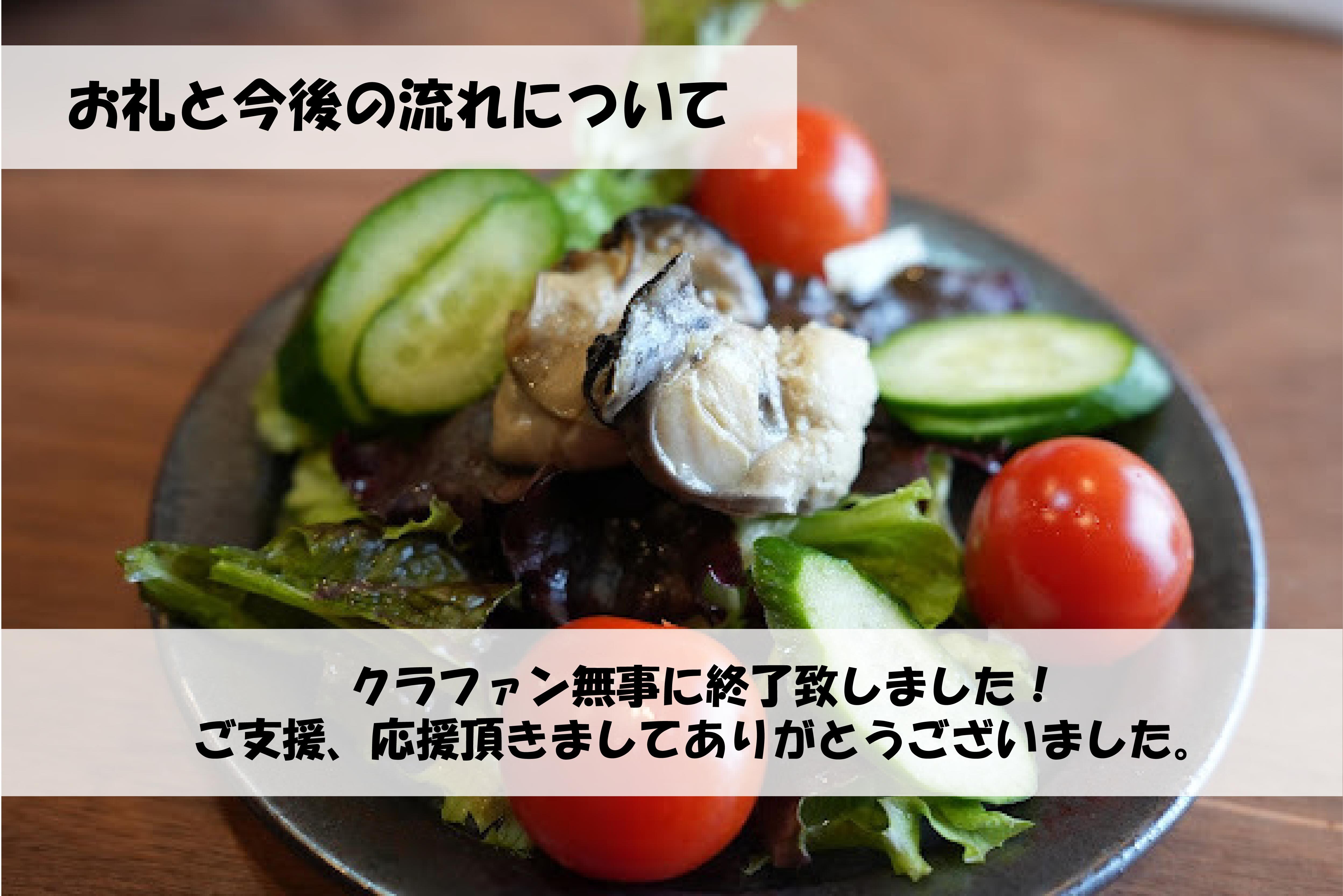 こんにちは。西野です。無事、支援してくれた方々への返礼品のお渡しが完了致しました。改めまして、ご支援、応援頂きましてありがとうございました。【岩牡蠣の缶詰の試作品を返礼品として選んでくれた方へ、アンケートの回答がまだ済んでいない方は、回答をお願いします。】メッセージにて送らさせていただいたグーグルフォームのURLまたは、返礼品を送った際に同封していましたメッセージカードのQRコードを読み取って回答をお願いします。なかなかアンケート回答が集まっていない状況です。皆さまのご意見は、商品化に向けての参考にさせていただきたいと思っています。選択式で3分程で終わるものですので、ご協力お願いします。まだ回答していない方は、試食して頂き、アンケート回答の程よろしくお願いいたします。