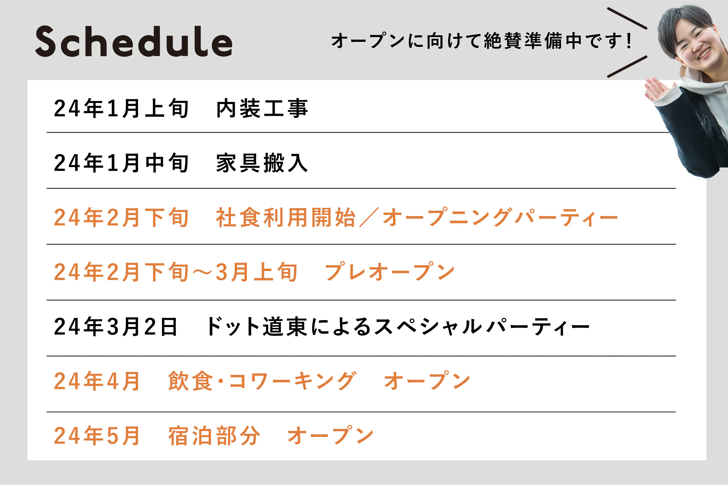 このスケジュールは目安であり、予期せぬ事態により遅れる可能性もございますが、順調に進めば上記の時期にオープンを迎える予定です。