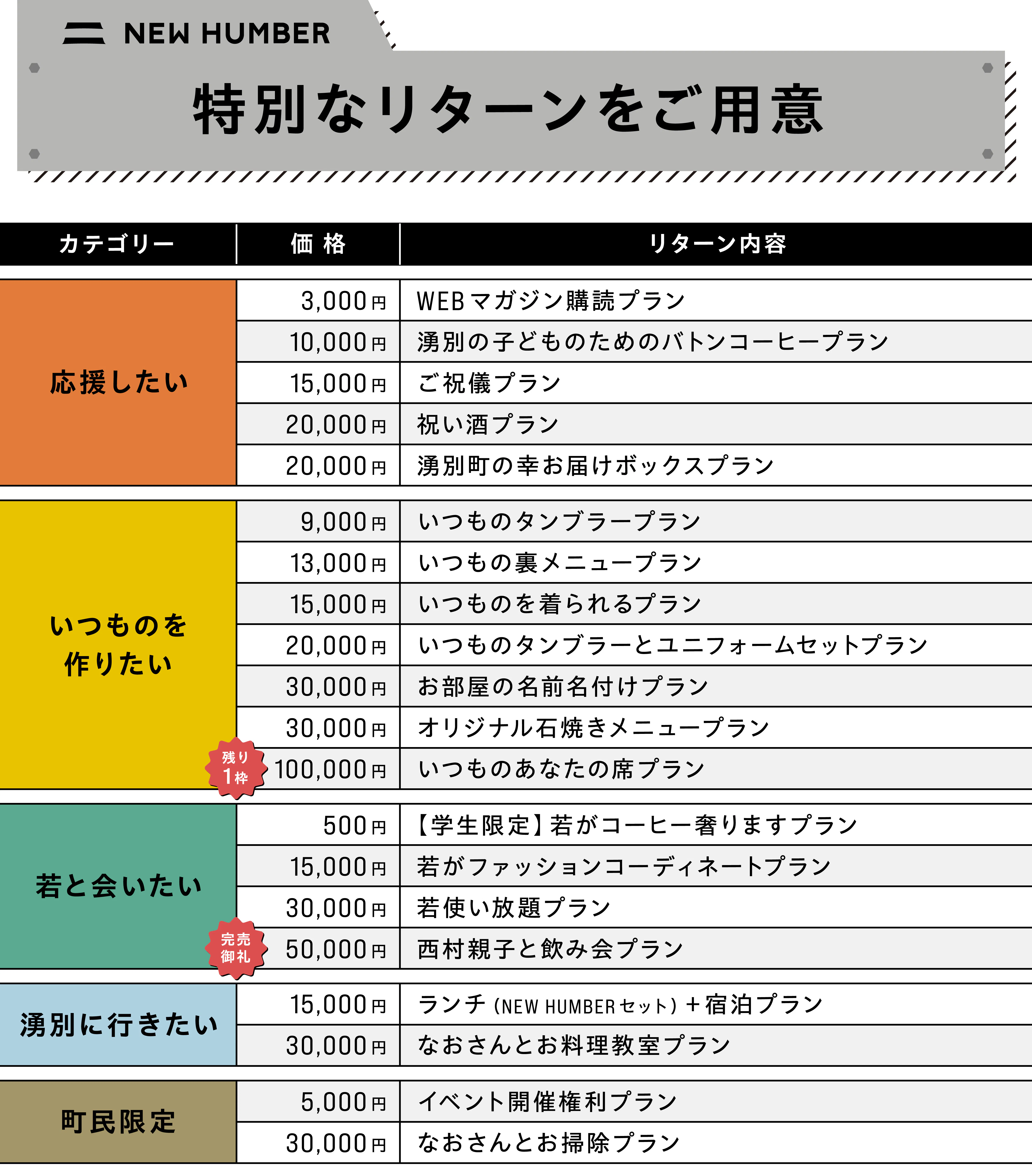 残り1枠となっている「いつものあなたの席プラン」とプロジェクト開始直後に売り切れた「西村親子と飲み会プラン」を好評につき追加いたしました!