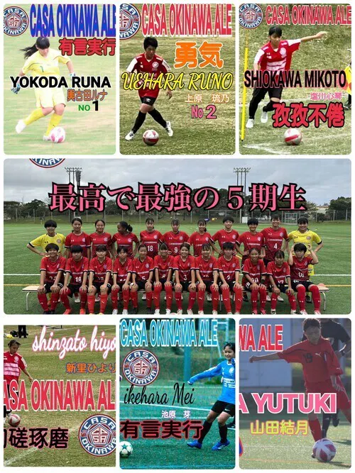 リフティング全然出来ない時からドリブルばっかりで状況判断出来ないメンバー達が一生懸命練習し見事チームとしては全国大会出場、県勢初の6冠の快挙を成し遂げ個人としてはナショナルトレセン、九州トレセン、そして6人全員飛び級で国体選手へ選ばれ素晴らしい活躍でした!