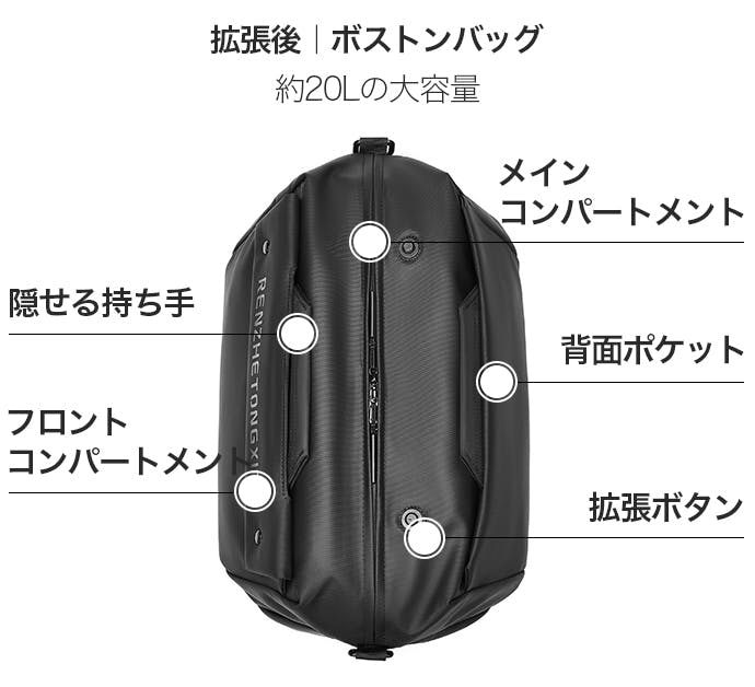 でも、外出先で荷物が増えた時や予定のない買い物をした時は、大容量のボストンバッグに拡張可能。