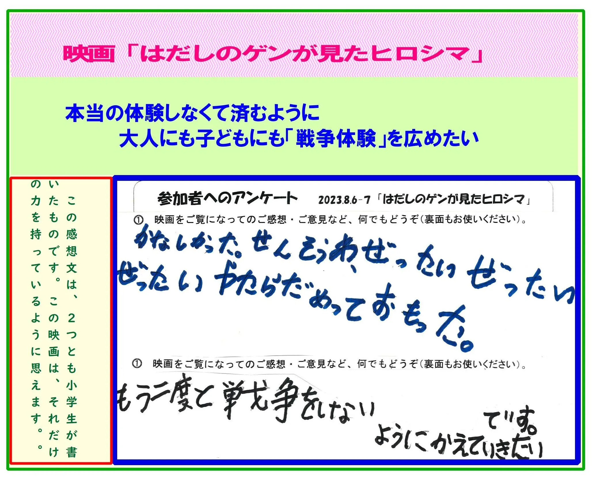 「はだしのゲンが見たヒロシマ」のドキュメンタリー映画の上映会が全国津々浦々で開催されるよう努めます。