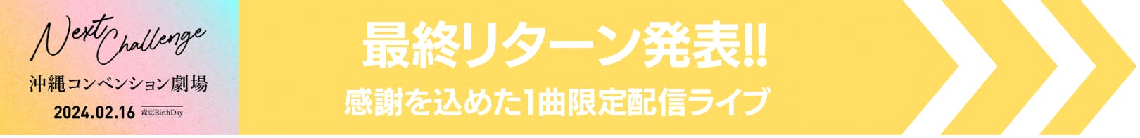 今回の沖縄でのプロジェクトで吸収したパワーを持って、全国各地(ゆくゆく海外も)へ 感謝の気持ちを込めて 今年も あなたの街にライブに行きます!そして、森恵に関わってるバンドメンバーさんやステージスタッフさんや運営スタッフさんに、クラウドファンディングを通して業務をお願いすることが出来ました!クラウドファンディングの本質は 人を豊かにするプラットホームと感じました!今回のプロジェクトが、これからチャレンジする方の後押しにもなって、それに関わる すべての方々が豊かに、そして、幸せになってくれる一つのモデルケースとなってくれると嬉しいです!ご支援いただいた皆様、ライブに来てくれた皆さま、応援いただいた皆さま、バンドメンバーの皆さま、スタッフの皆さま 本当に 本当に ありがとうございました!!