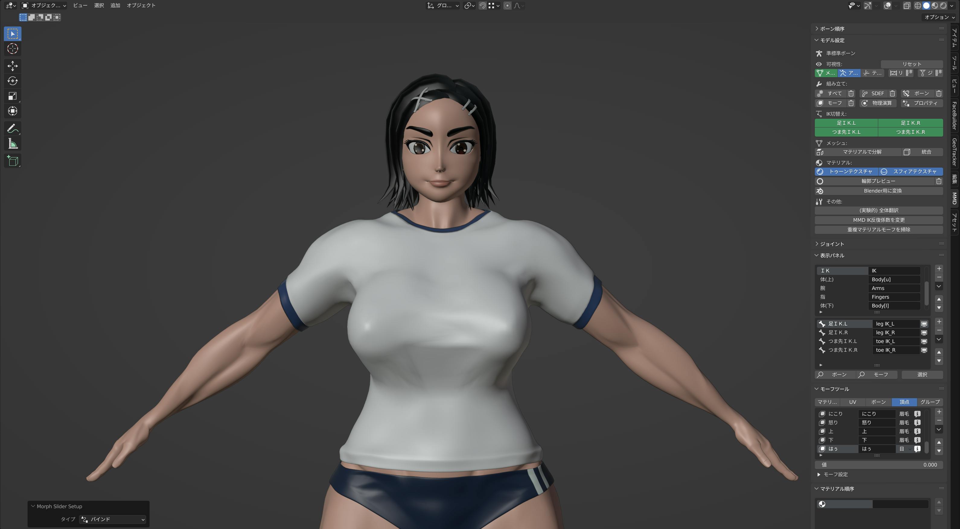 2023/12/22 13:31今日は表情のバリエーションを増やしていってます。だいぶBlenderの扱いにも慣れてきました。あとウェイトの調整、そしてリジッドボディ(まだよく分かってない…)を組み込めば、試作型モデルとしては完成かな? もっと見る