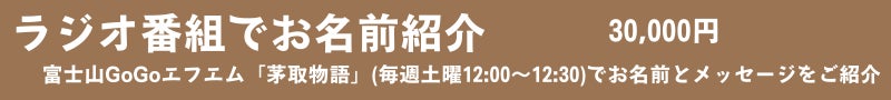 富士山GoGoエフエムにて毎週土曜日12:00~12:30に放送される「茅取物語」にて、本リターンの支援者のお名前や応援メッセージをご紹介します。