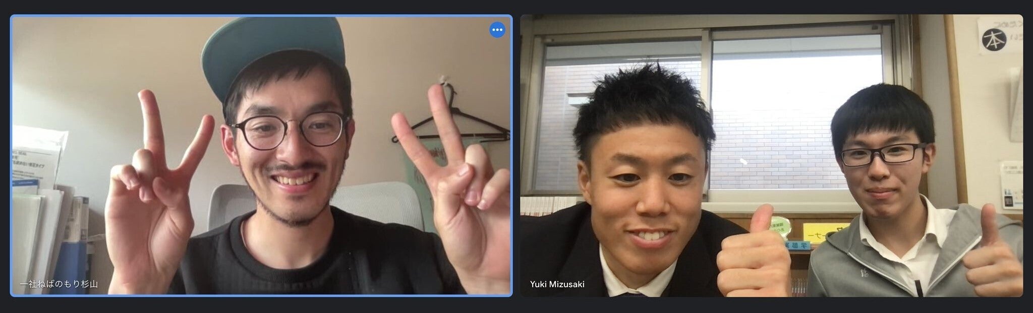 オンラインでのインタビューをしました 左:杉山さん 右:担当教員(水﨑先生) 小境
