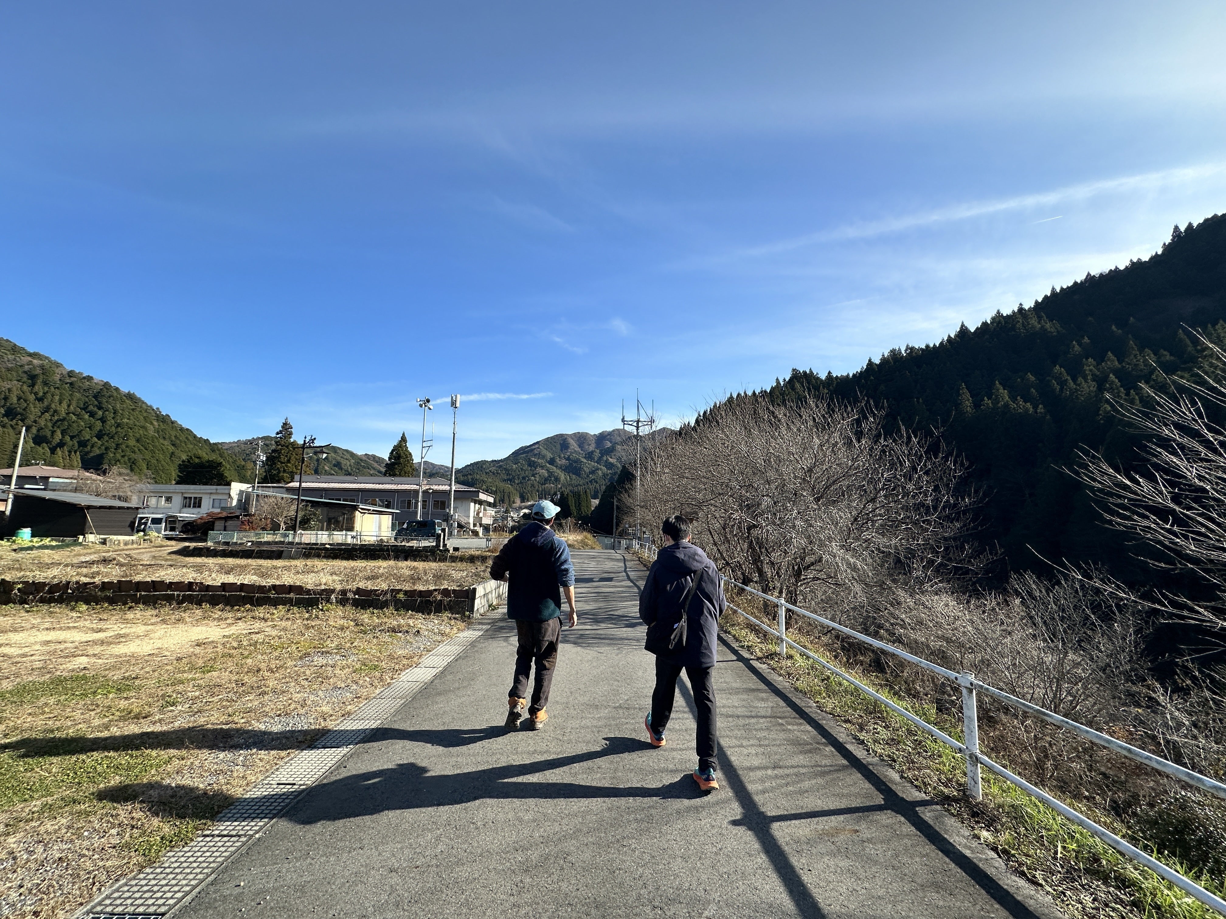 根羽村に到着後、オンラインでインタビューをした杉山さんに根羽村を歩きながら説明をしてもらいました。