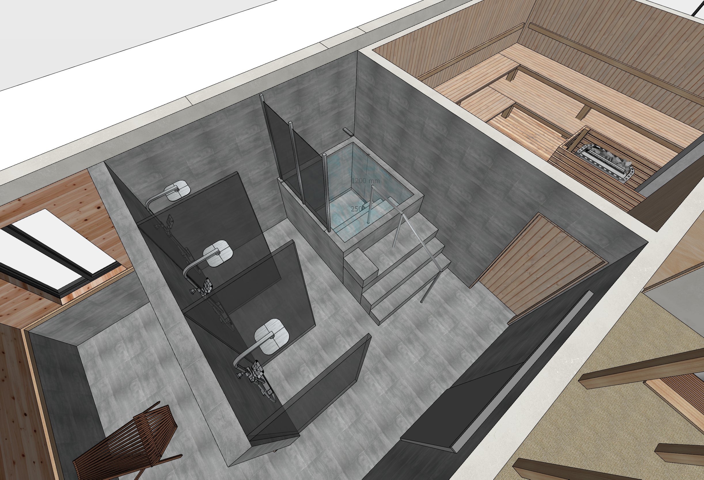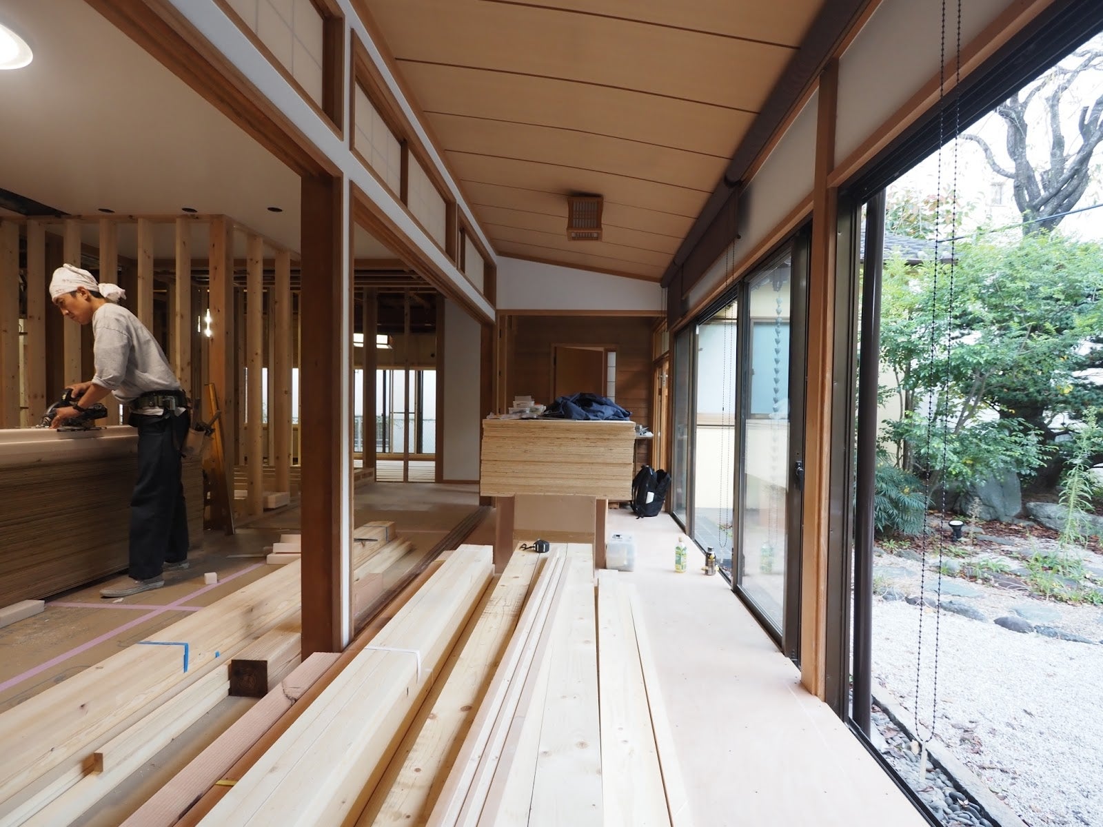 そう考えた時に、サウナは庭に既製品を置くのではなく、屋内にしっかりこだわった設計でつくることにしました。さらに、どうしても外気浴環境を作りたく、外に出れるように浴室の壁を一部抜くことにしました。