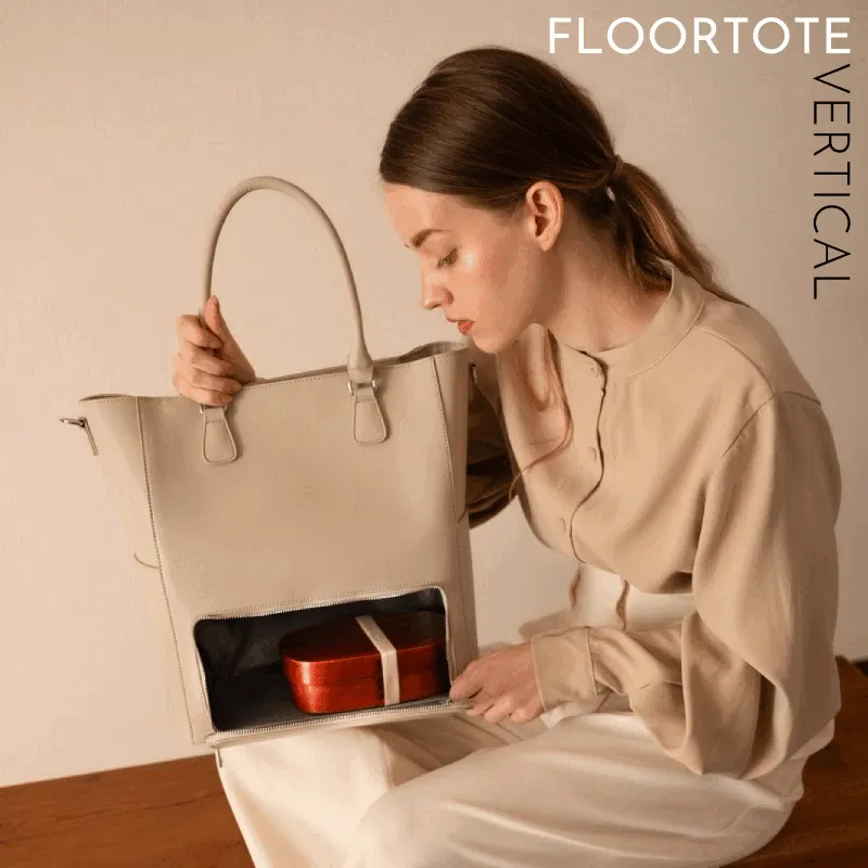 こんにちは。piunoと申します。私たちは、シンプルな中にも一味違うプラスワン(+1)の機能を備えたモノづくりを目指しております。私たちのスタッフが感じていたトートバッグのデメリットを解決したい思いから開発がスタートした、最新モデル「FLOORTOTE Vetical」をご紹介させていただきます。