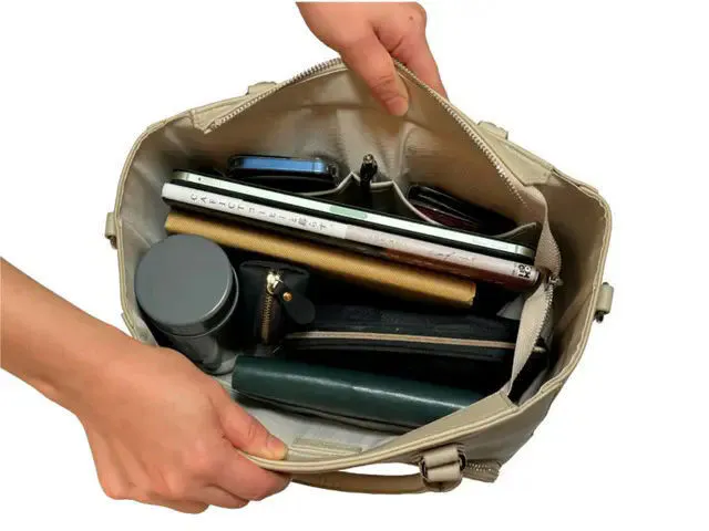 - 転倒や重い荷物をバッグの上に乗せたままの保管は、シワ、型崩れの原因になりますので避けてください。