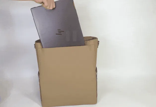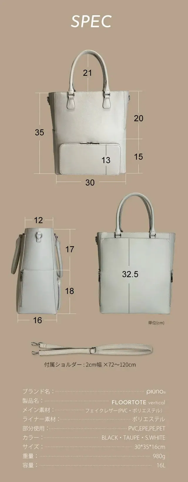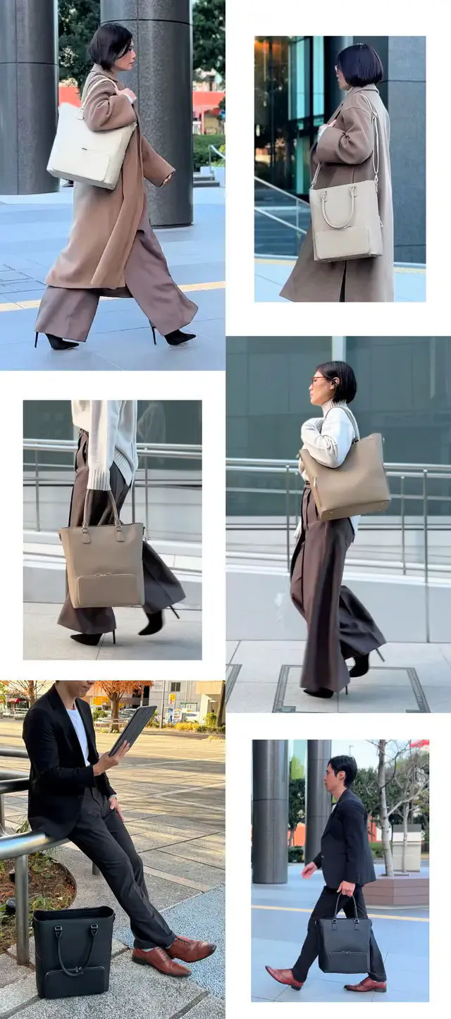 「FLOORTOTE Vertical」は、シンプルなデザインで、電車や人ごみの中でも、邪魔にならないスッキリした13インチ縦長モデルをベースにpiuno独自の機能をプラスしてデザインしました。