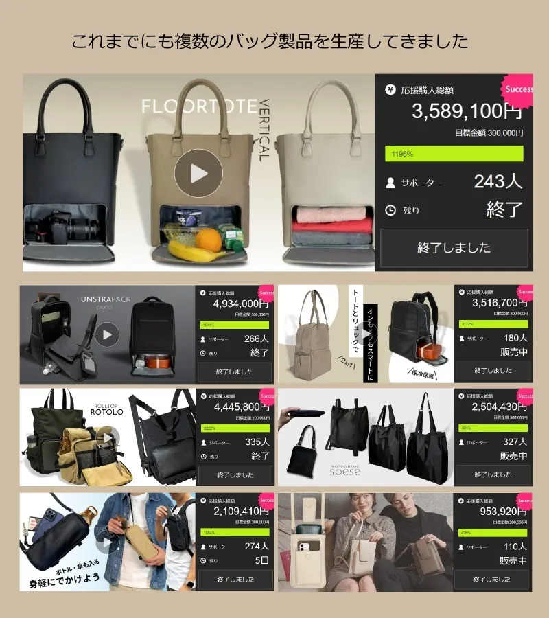 ブランド「piuno」のデビュー作でもある前回プロジェクト「FLOORTOTE」をご使用後に多数いただいた貴重なご意見を参考にさせていただき、もっとこうすれば良かった、私たち自身も納得のいかなかった点を見直し、サイズ感及び品質面をバージョンアップいたしました。