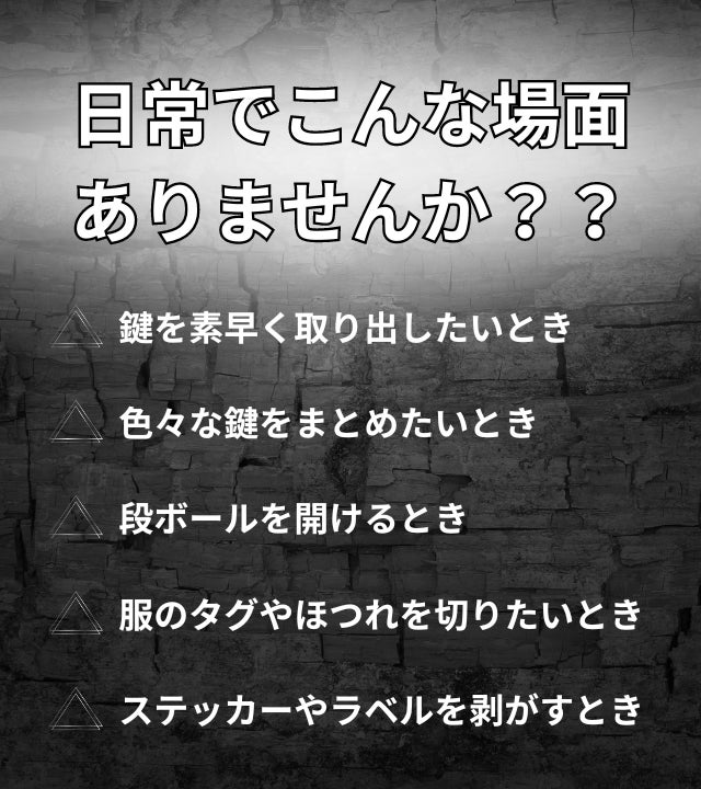 刃渡6cm以上のものを携帯すると銃砲刀剣類所持等取締法(銃刀法)違反になる可能性も。コンパクトマルチキーホルダーは刃の部分が小さく携帯性も抜群!