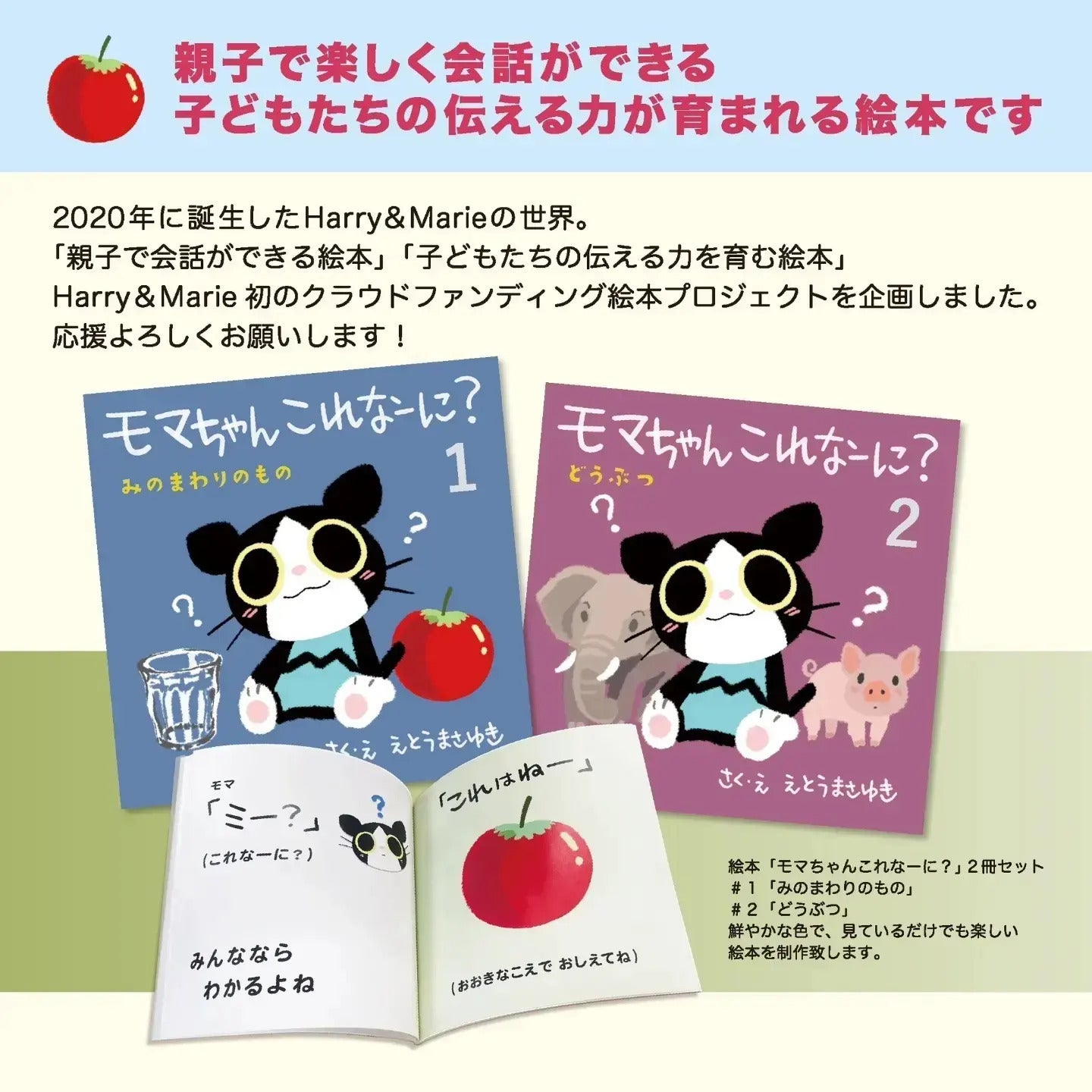 今回 Harry&Marieの絵本を通して、たくさんの子どもたちに親子であたたかい時間を過ごしてもらえたらと企画した「モマちゃんこれなーに?」絵本プロジェクト!