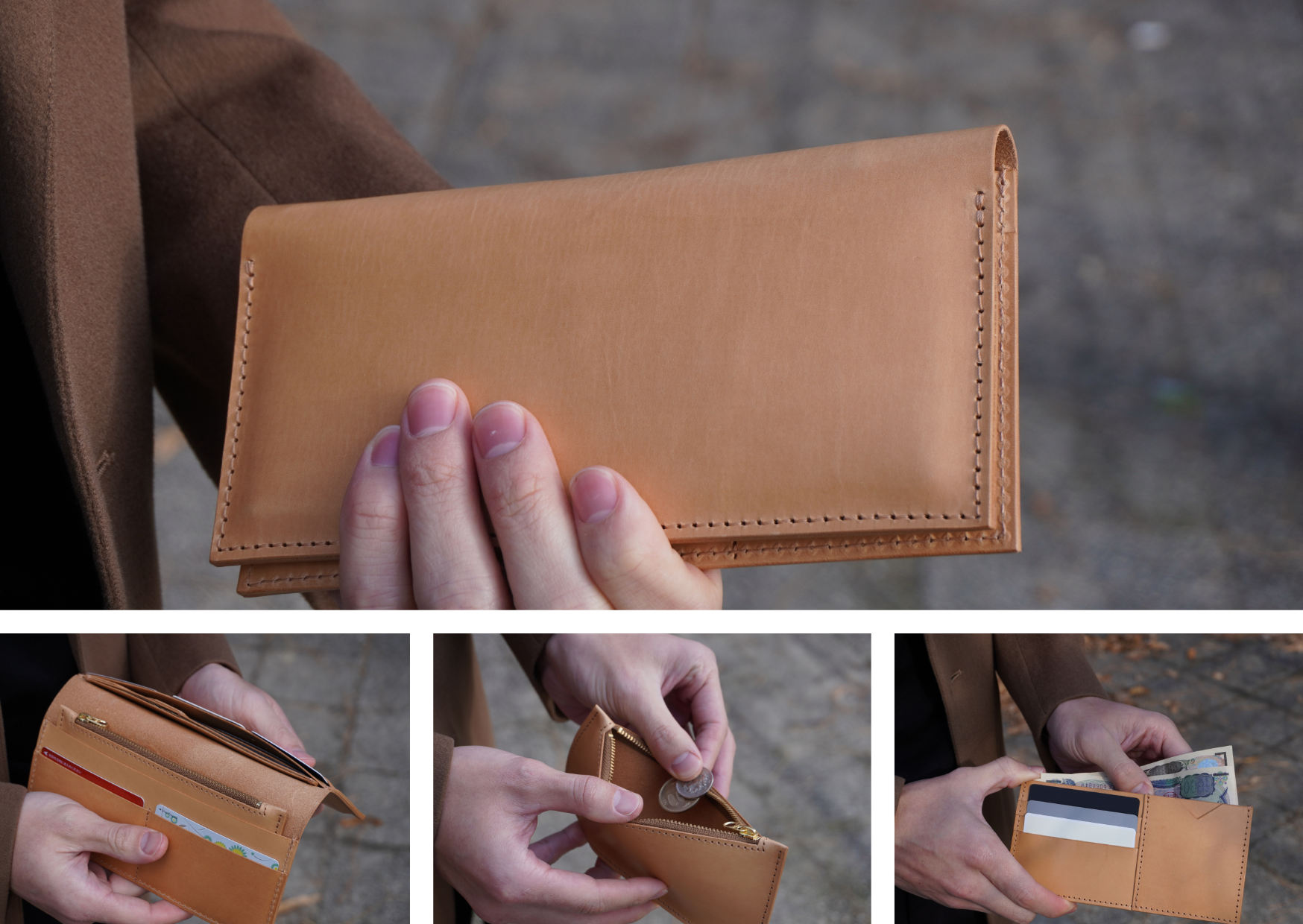 本革の魅力の一つである「経年変化」を楽しんでいただくためにも、できるだけ長く大切に使っていただきたいという思いを込めて制作しています。ご自身の変化に合わせてお財布自体を変化させていくことで、この思いが実現できるのではないかと考えました。時代の変化やご自身の変化をお財布の変化と一緒に楽しむことができるアイテムです!