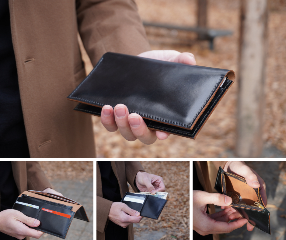 企画していく中で、東構さんのこだわりと熱意をとても感じ、それを「できるだけカタチにしたい」と思いできたのがこちらのお財布。せっかく持つならかっこいい方がいいし、使いやすい方がいい。場面や時代によって変わるその“使いやすさ”を、ご自身の手でカスタムしていただければと思います。