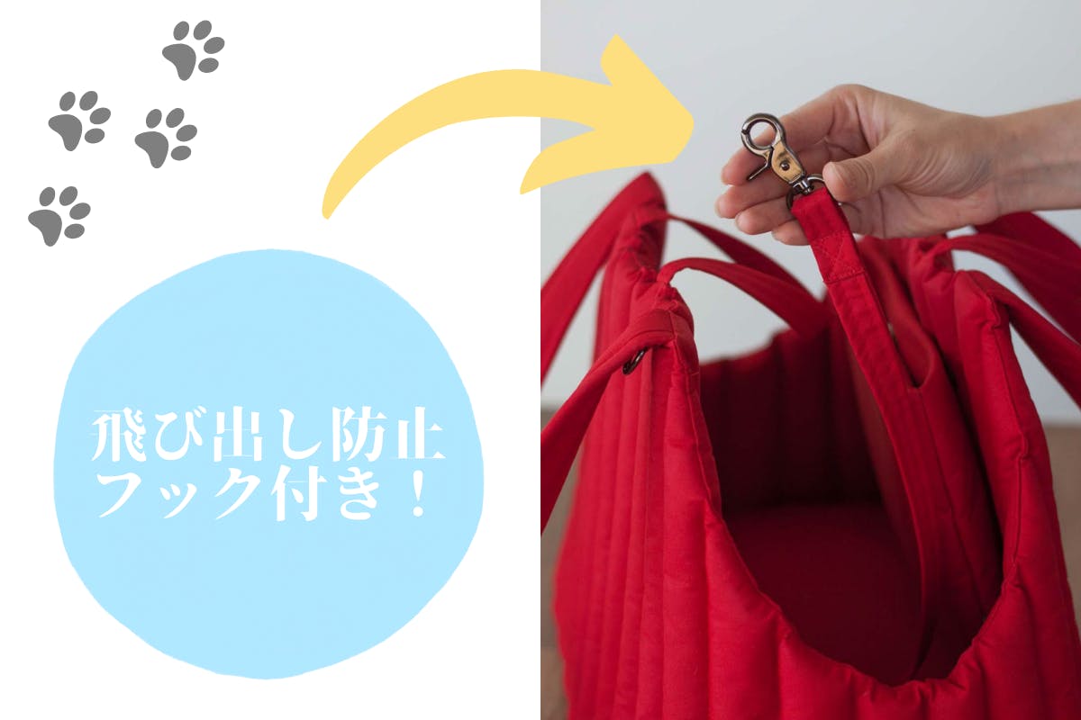 ペットがキャリーバッグから逃げないよう、飛び出し防止フックも付いています。