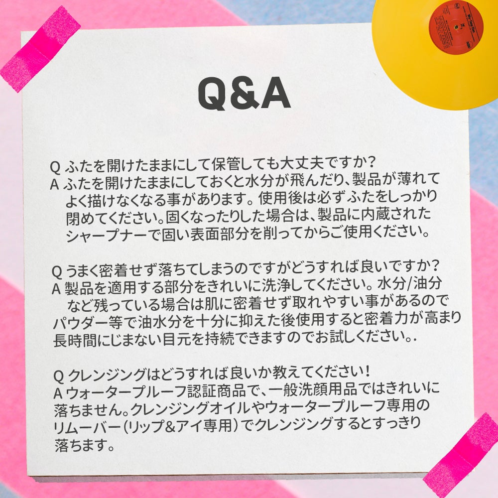 ※使用前に油・水分がついていると肌に密着できないので、にじんでしまう事があります。お粉などで油分を十分抑えてから押さえてから使用するとより密着力が高まり、長くにじまない目元を持続することができます。