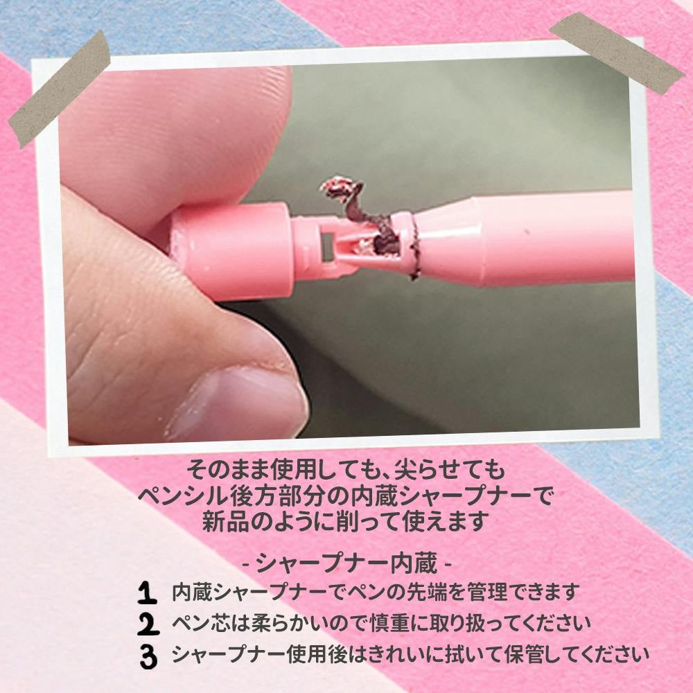 ※時間が経つと密着して落ちにくくなりますので、ぼかして使用したい場合はなるべく早めにぼかしてください。※後方に内蔵のシャープナーを使用してペンの先端を管理できます。