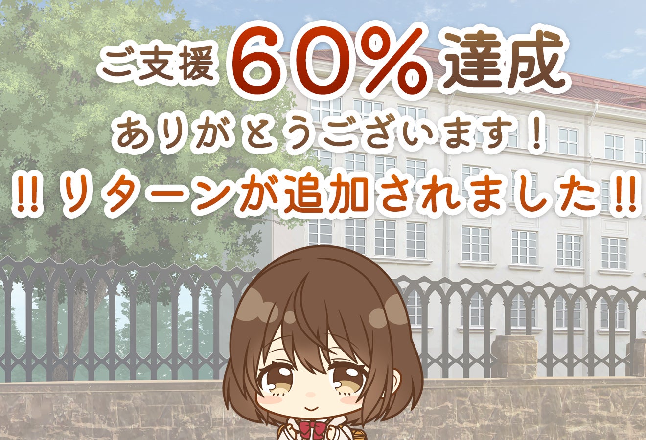 皆様のご支援のおかげで、プロジェクト60%達成いたしました!