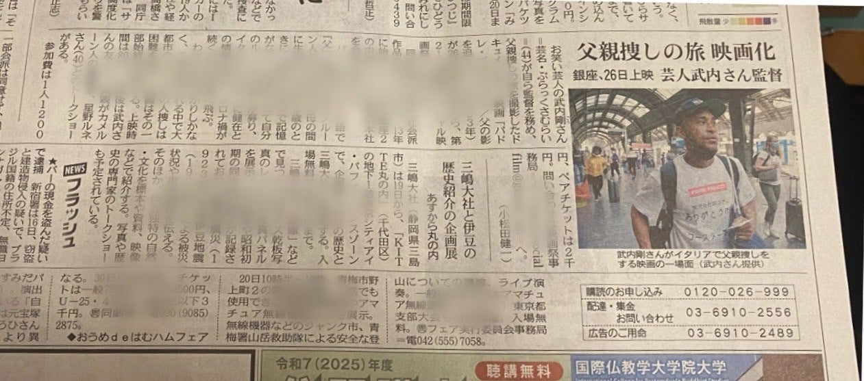 支援者の皆さま、こんにちは。『40年ぶりに父を探す旅、異母きょうだいとの出会い—家族の奇跡を本として残したい!』プロジェクトオーナーの武内剛です。の武内剛です。本日は、皆さまに大切なご報告が3点あります。書籍の発売日が2026年5月20日(水)に決定しました!そして、タイトルは、、、、、『「まぶたの父」を探す旅、お笑い芸人イタリアへ飛ぶ(中日新聞社 出版部)』です。※掲載している表紙画像は、仮のサンプルです。正式な書影(表紙デザイン)は現在制作中で、完成次第あらためてご案内します。当初お伝えしていた予定より、半年近く遅れての発売となってしまい、長らくお待たせしてしまって本当に申し訳ありません。その分、より良い形で皆さまにお届けできるよう、編集・制作を重ねてきました。そしてもうひとつ嬉しいご報告です。映画『パドレ・プロジェクト/父の影を追って』が、2月8日、静岡県浜松市にて開催された、「はままつ映画祭2026」で賞をいただきました。この受賞も、作品を支えてくださった皆さまの応援の積み重ねがあってこそです。改めて、心からありがとうございます。リターン発送について書籍関連のリターン発送は、発売日に合わせて準備を進めております。発送まで今しばらくお待ちいただけますと幸いです。(進捗は活動報告にて随時ご案内します)発売に向けて、ここからさらに動きが増えていきますので、今後は活動報告をこまめに更新していきます。制作の裏側や近況も含めてお届けしますので、ぜひ楽しみにしていてください。改めまして、皆さまのご支援に心から感謝いたします。引き続き、どうぞよろしくお願いいたします。映画公式サイト→ https://padreproject.jp/令和8年2月14日映画「パドレ・プロジェクト/父の影を追って」監督・プロデューサー 武内剛(ぶらっくさむらい)