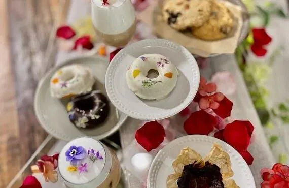 2024/01/22 23:41本日3日目にして、目標の30% ( ゚Д゚)とは言え、まだ全然周りの人々やお客様の共感を得て巻き込んだって感じがしないので、リアルな会話やチラシ、SNSを通してのシェア・拡散のお願いを頑張らねばと思ってます。本日の画像は、カフェで出してるメニューですが、単純に私が花屋だってことから、フード・ドリンクメニューにもお花を使って、ドライフラワーのカフェ空間だけでなく、五感全てでお花を楽しんで欲しいって想いで出来上がったものです。これに至る前は、ドーナツのデコレーションに使っていた花は、「食べれる押し花」ってのを購入していましたが、高いって理由と、バリエーション豊富かつ、そんなに高くないエディブルフラワーの仕入れ先を見つけたことで、一気に華やかなで可愛いドーナツになってくれました。ちなみに、エディブルフラワーを自分たちで押し花にしてますが、大学時代の雑草学って授業があって、雑草を押し花にして提出って課題をやっていたので、何の抵抗もなく、数回の実験で売ってるものと遜色ないクオリティに仕上げる事が出来ました。何でもいつかどこかで役に立ちますね。では、明日の4日目も頑張って行きたいと思いますので、皆様、シェア・拡散のご協力宜しくお願い致します。 もっと見る