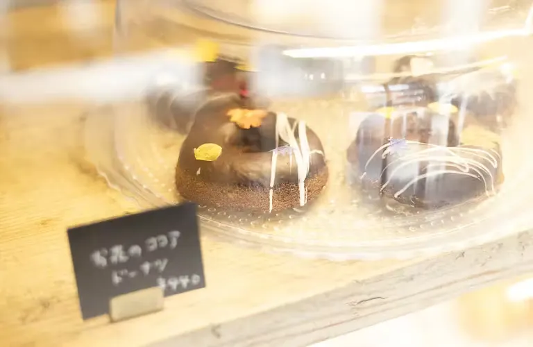 1階で、食べられるお花のドーナツや焼き菓子をオーダーし、2階のカフェスペースにて、イートインでお召し上がりいただけます。また、ちょっとしたお土産にもなる雑貨類も販売してます。