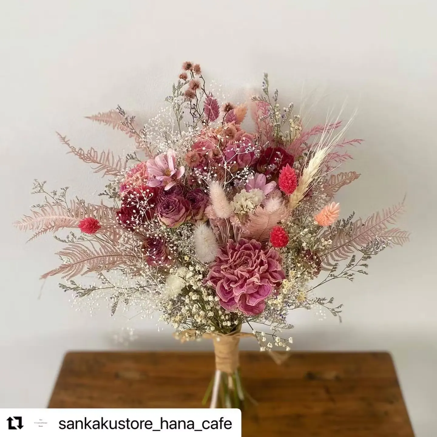 2024/01/25 01:34日を跨いでしまいましたが、クラファン挑戦4日目です。一般的には公開から3日程で一度支援の勢いはストップするらしく、私も例に漏れず本日はお一人に止まりました。ここからはコツコツ期と言われて、地道に支援者の輪を広げていく時期だそうです。せっかくですので、私のお店やお花への想いを、この場を借りてお伝えする事にします。写真のデザインは、コロナ禍の真っ只中に担当した、結婚式の受付のアレンジです。友人、知人を呼ぶ事も難しくなった最中での披露宴、少しでもお二人の記憶に残る思い出になるお手伝いが出来ればと、新郎様がバリスタだった事もあり、コーヒーをテーマに受付のお花を飾る事をご提案。コーヒーの様な黒い花を咲かせるチョコレートコスモスに、カスミ草でミルクを注ぐシーンをデザイン致しました。カップから溢れ出る花やツボミの動きで、注ぎ入れるミルクによって、コーヒーの香りが立つシーンをデザインしたものです。打合せ時は、どんなものが出来るのか明確にイメージが出来てなかったお二人ですが、2回も延期された事で、この花への期待感は膨れ上がる一方でした。自信はあったものの、お二人の想いに追い越されないかちょっと心配でしたが、3度目の正直の披露宴当日、作品を確認しに受付の部屋へ入った新郎新婦さん・・・ドキドキの時間でしたが、廊下の向こうから様子を伺う私に部屋から出てくるなり気付いた新郎さんが、満面の笑みで親指を立てた拳を突き出しオッケーサイン。あの瞬間は忘れられないシーンの一つです。天井一面のドライフラワーのカフェで、わざわざ足を運んでくれたお客様に空間を楽しんでもらう事もお店の存在意義ですが、私にしか出来ないデザインや感性を駆使して、皆さんの想いをお花で形にして喜んで頂くのも私の使命だと思っております。どうか、お店を存続出来た暁には、皆さまの想いを私のお花に託して頂けないでしょうか。それこそが、サンカクストアを存続させる意義だと考えております。長文、最後までありがとうございました。 もっと見る
