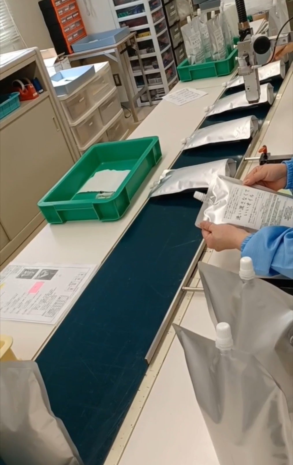 オイルを充填し、パッケージに商品ラベルを貼り、一つ一つ丁寧に検品しながら作業を進めてくださっています。