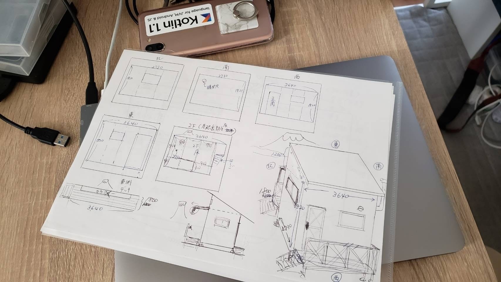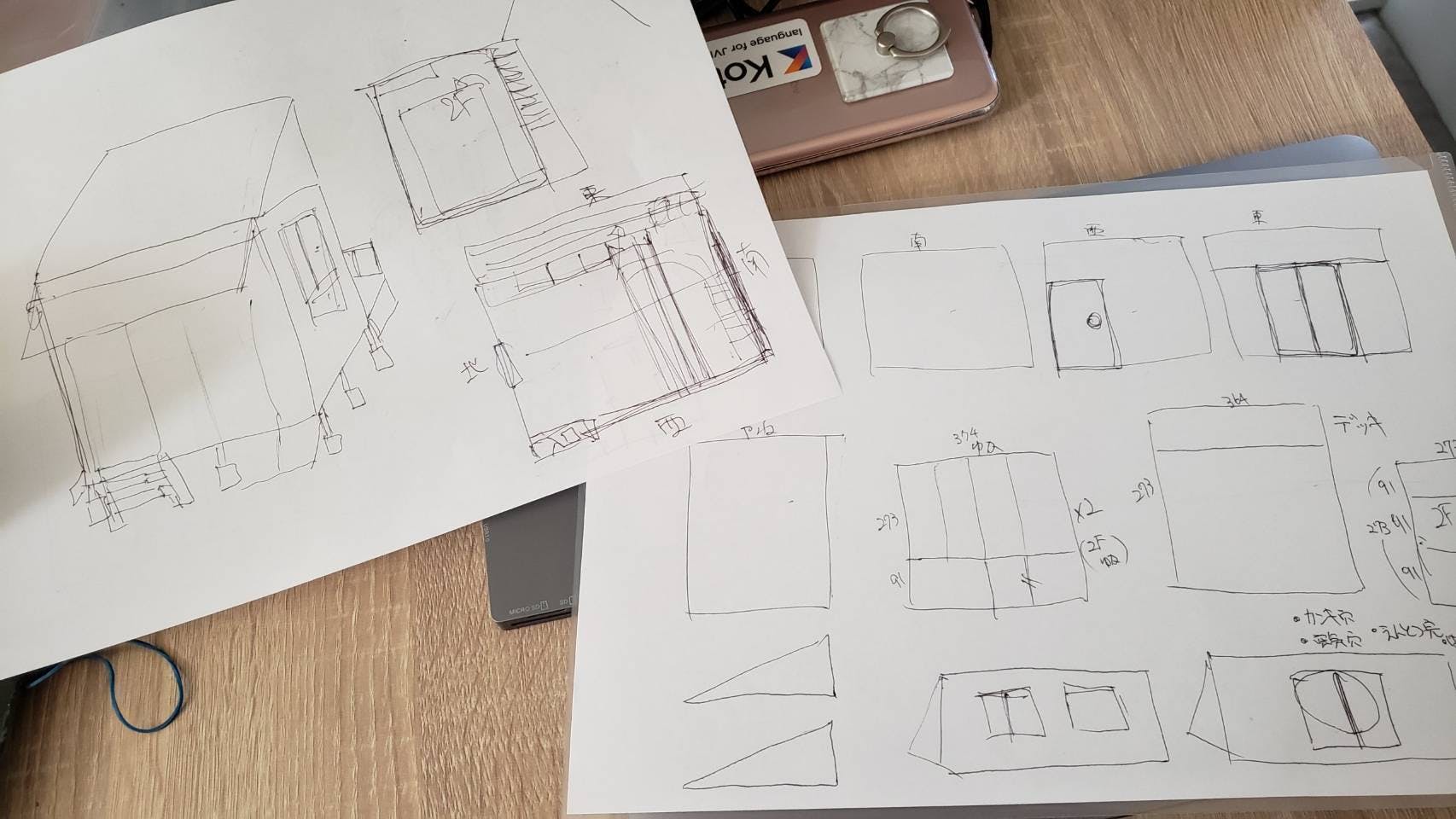 自分なりに全体のサイズや詳細部を決めました。これからまだまだやることがいっぱいあります。材料の選定や