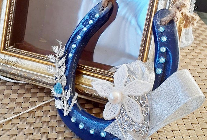 蹄鉄に装飾を施して壁掛けに仕立てたもの。こちらのリターン品は、限定20個になります。
