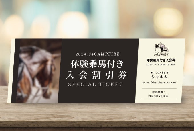 当クラブに体験乗馬へ来ていただき、気に入っていただけたら、入会の際の入会金を3割値引きさせていただくチケットです。※入会を強要するものではありません。入会のご意思がなくともお気軽に体験乗馬に来てください。