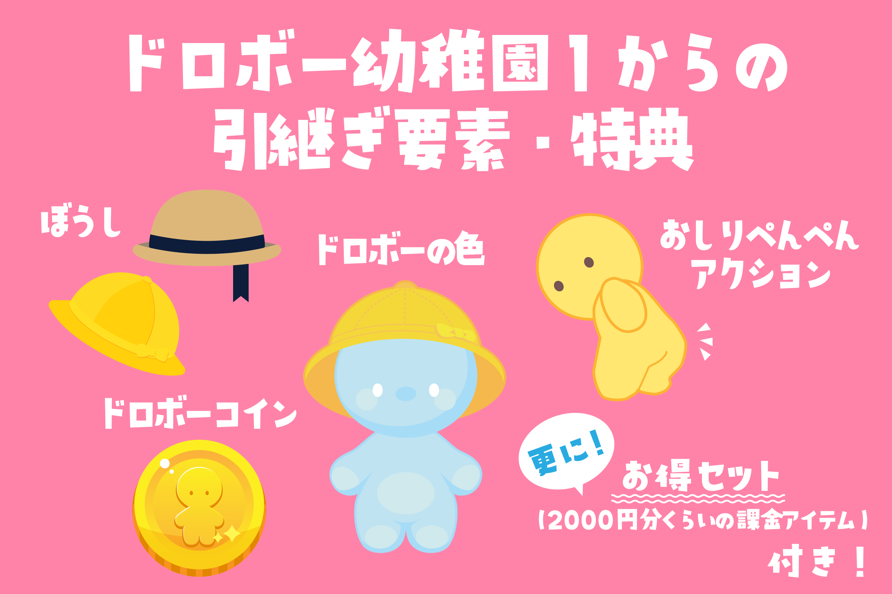 ドロボー幼稚園を事前に遊んでくれた方にはデータ引継ぎ特典を用意しています。